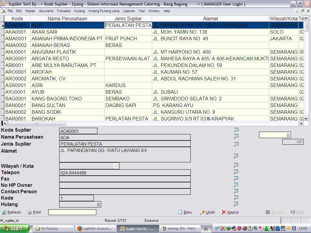 Program Aplikasi Programmer rumah makan catering katering Berkah
