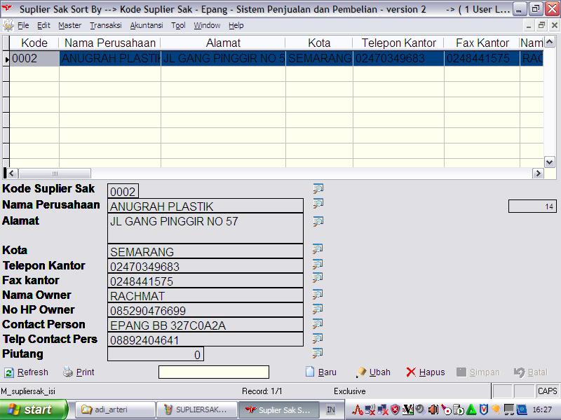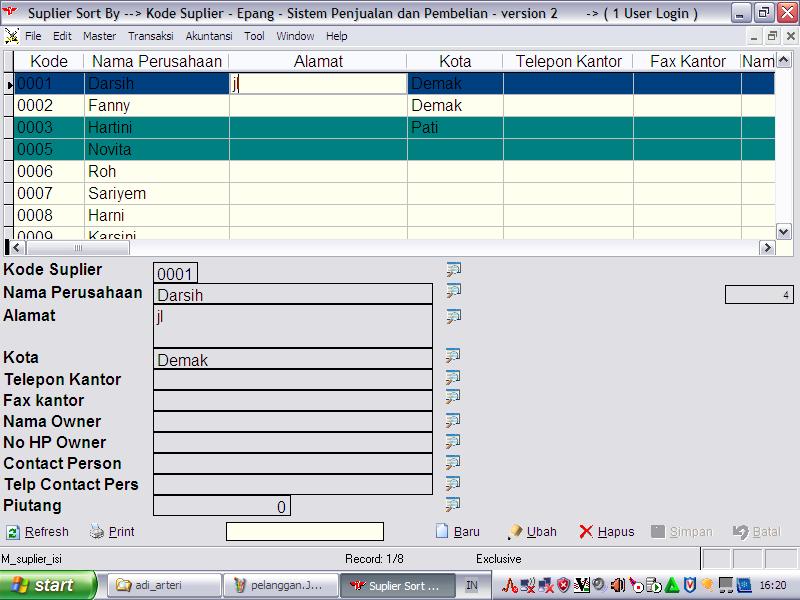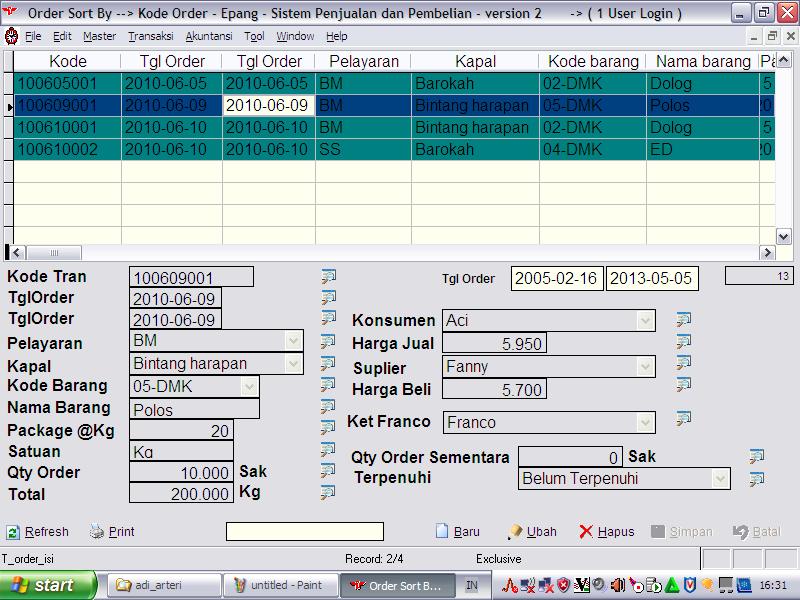 Aplikasi menggunakan Bahasa pemograman Visual Foxpro 9 dengan database MySql dan ODBC Mysql.