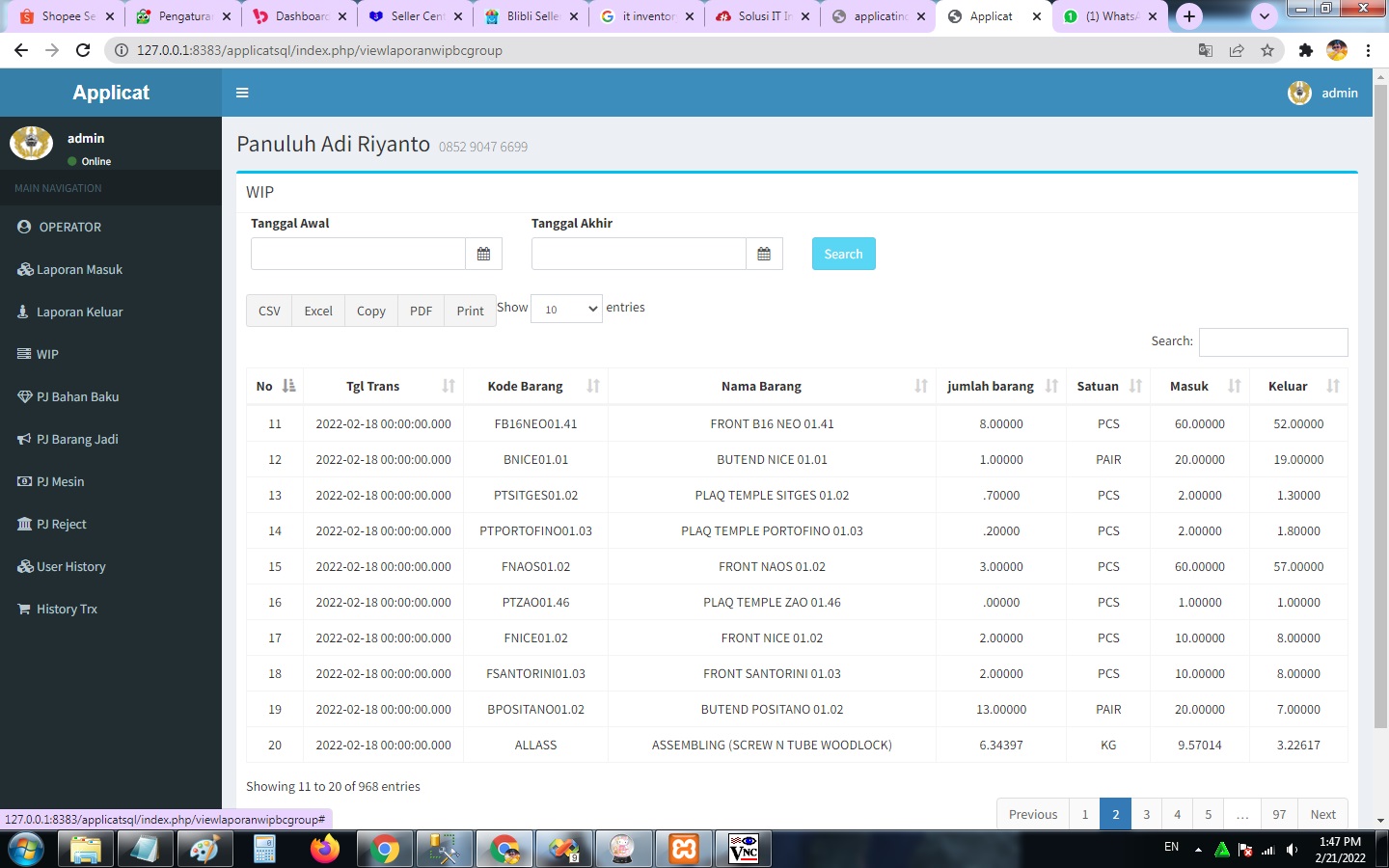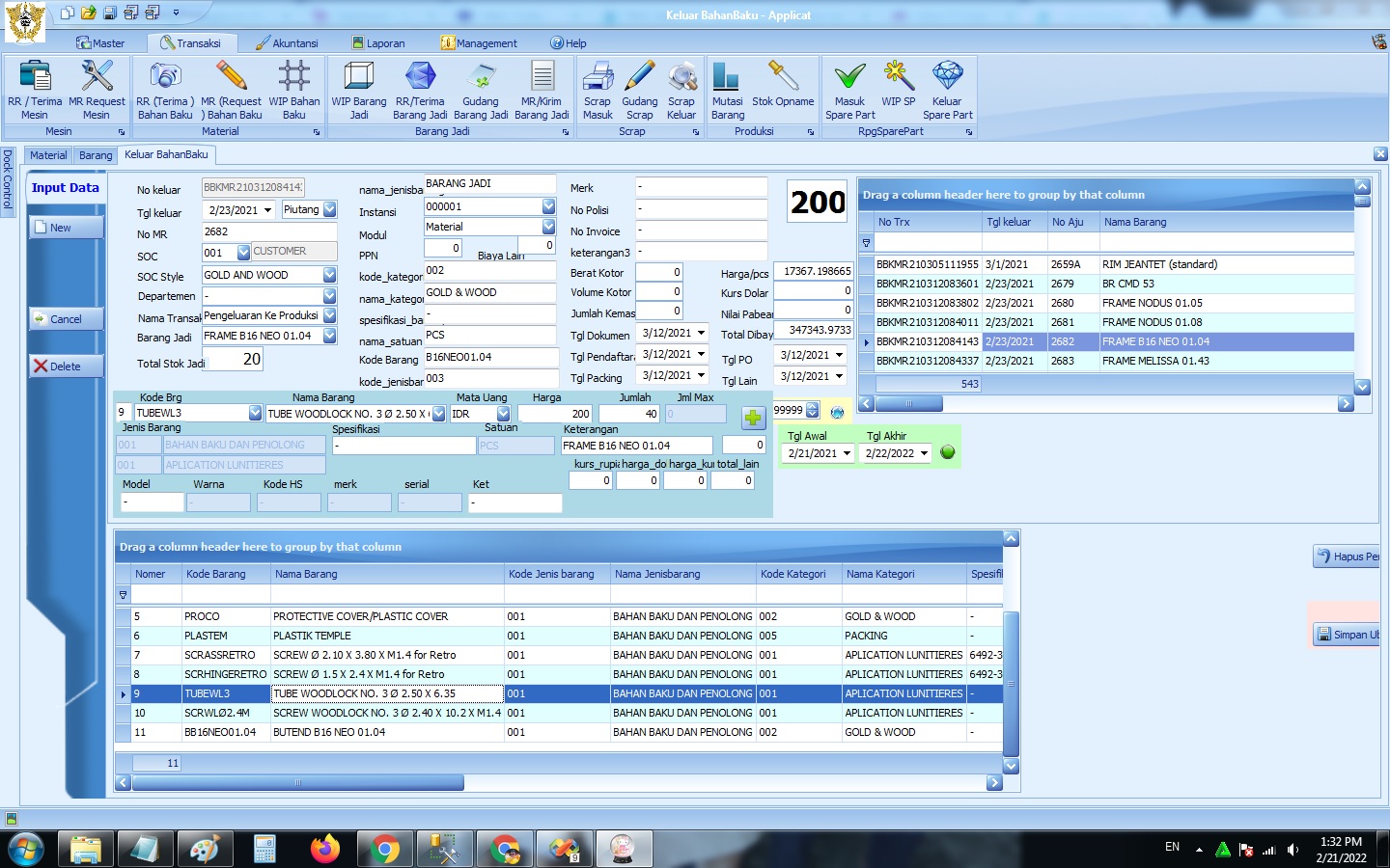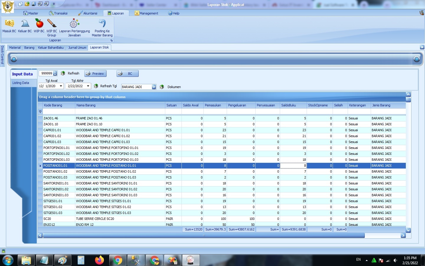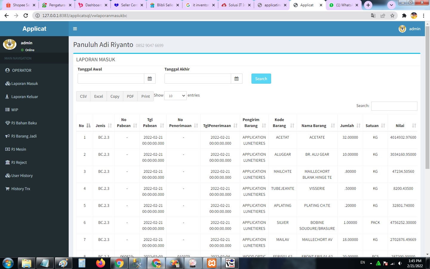 Sistem Informasi Software Program IT Inventory inventori Bea Cukai ERP pabrik Produksi Kawasan Berikat Semarang dokumen kepabeanan seperti BC 2.3, BC 2.6.2, BC 2.7, BC 4.0, BC 2.6.2, BC 4.1