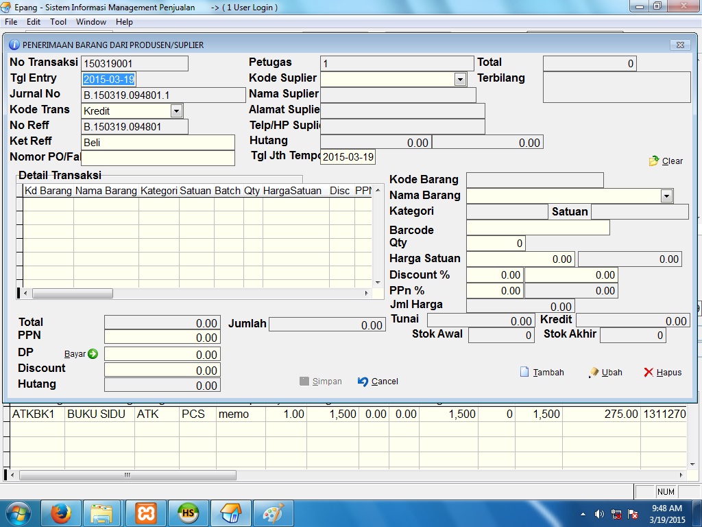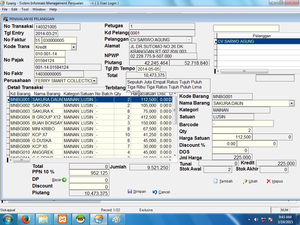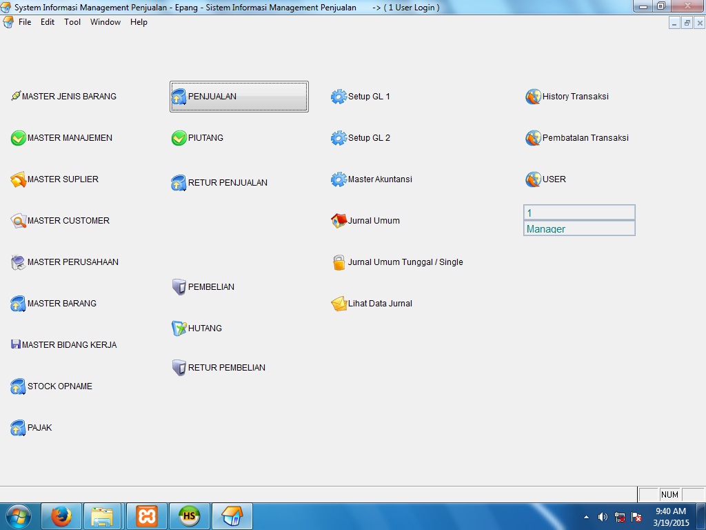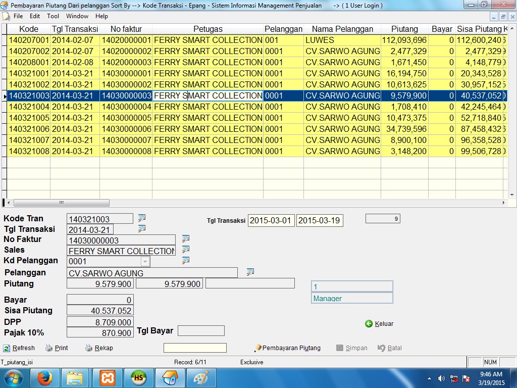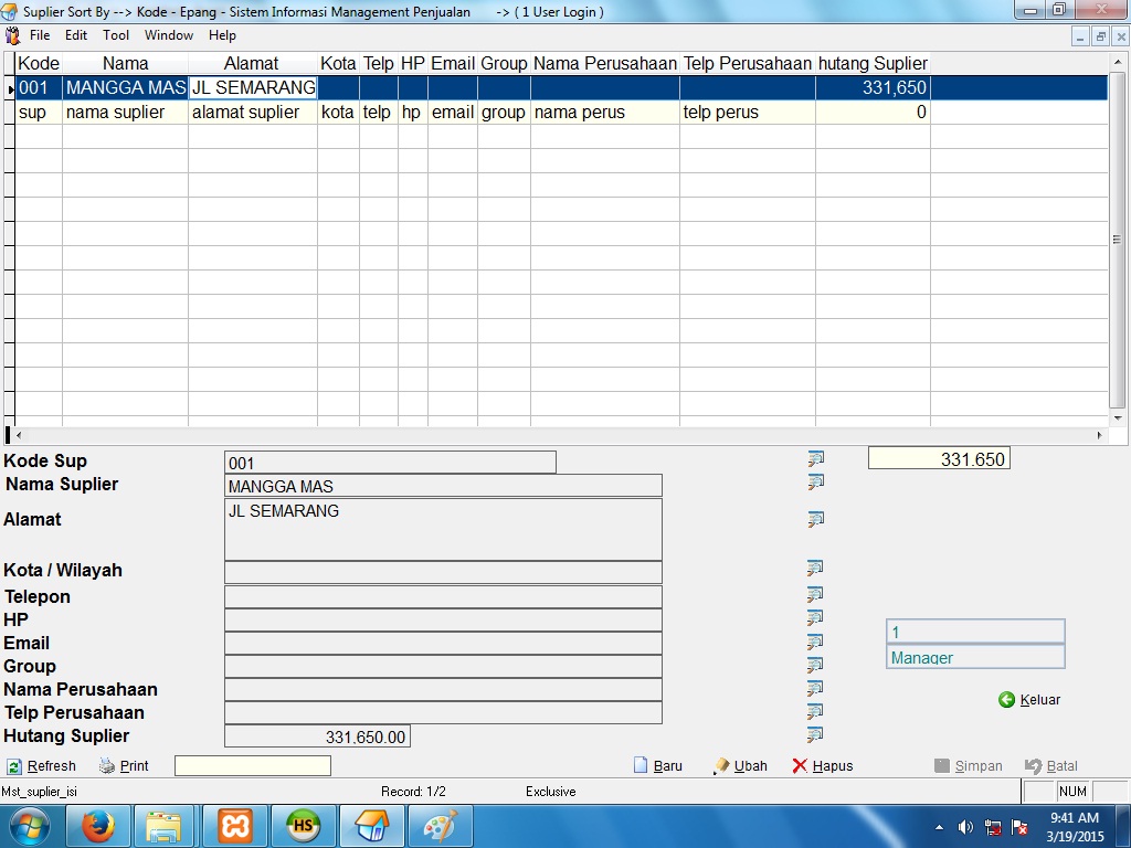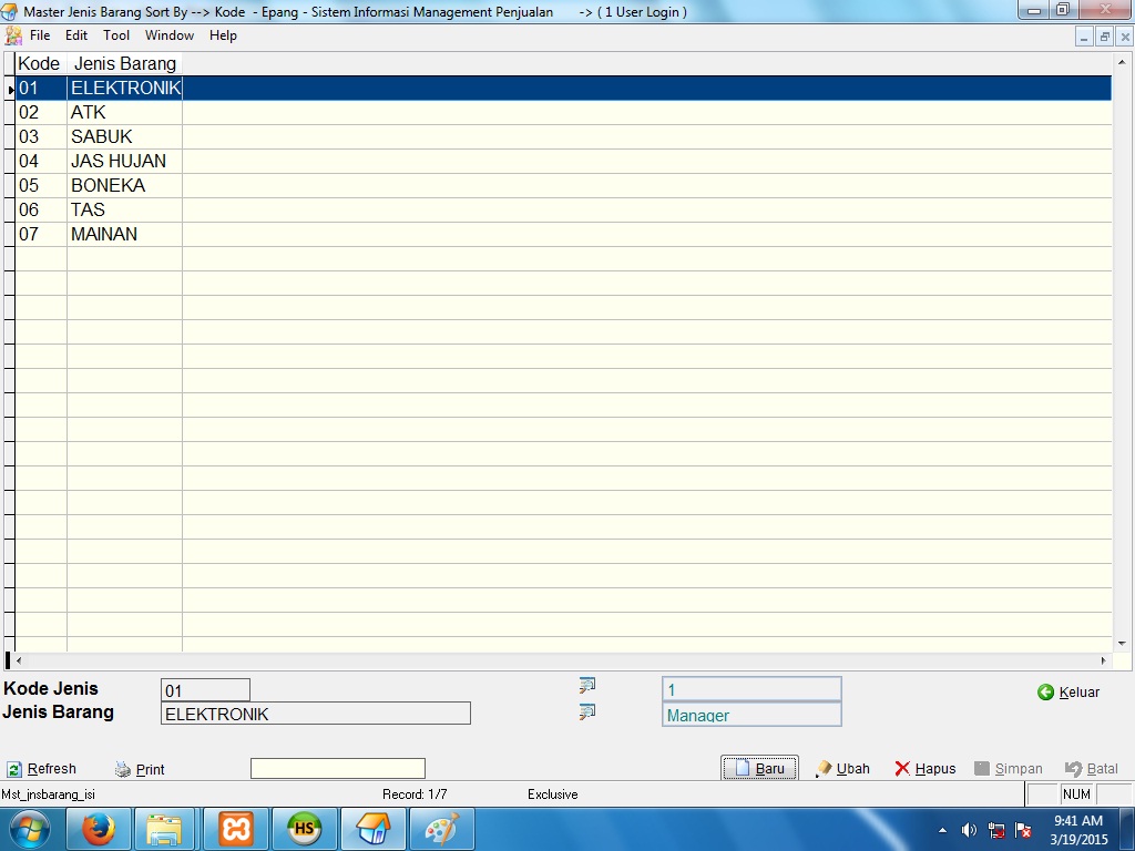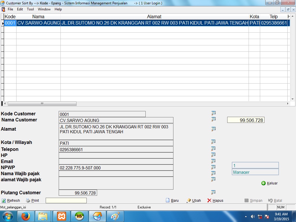 Aplikasi menggunakan Bahasa pemograman Visual Foxpro 9 dengan database MySql dan ODBC Mysql.