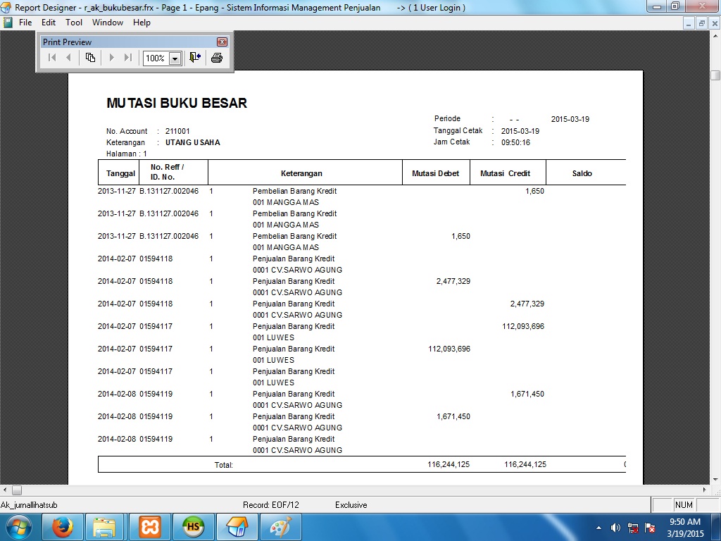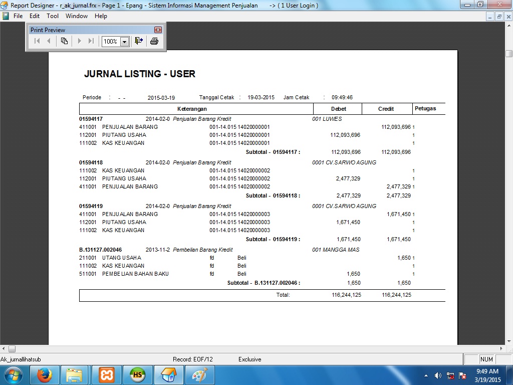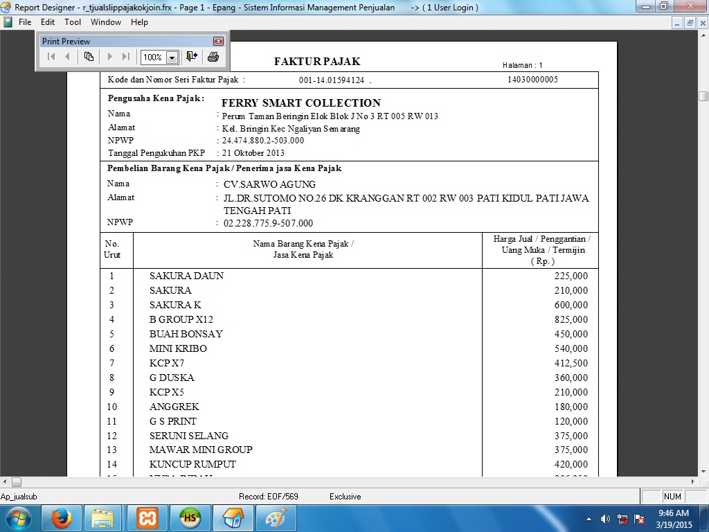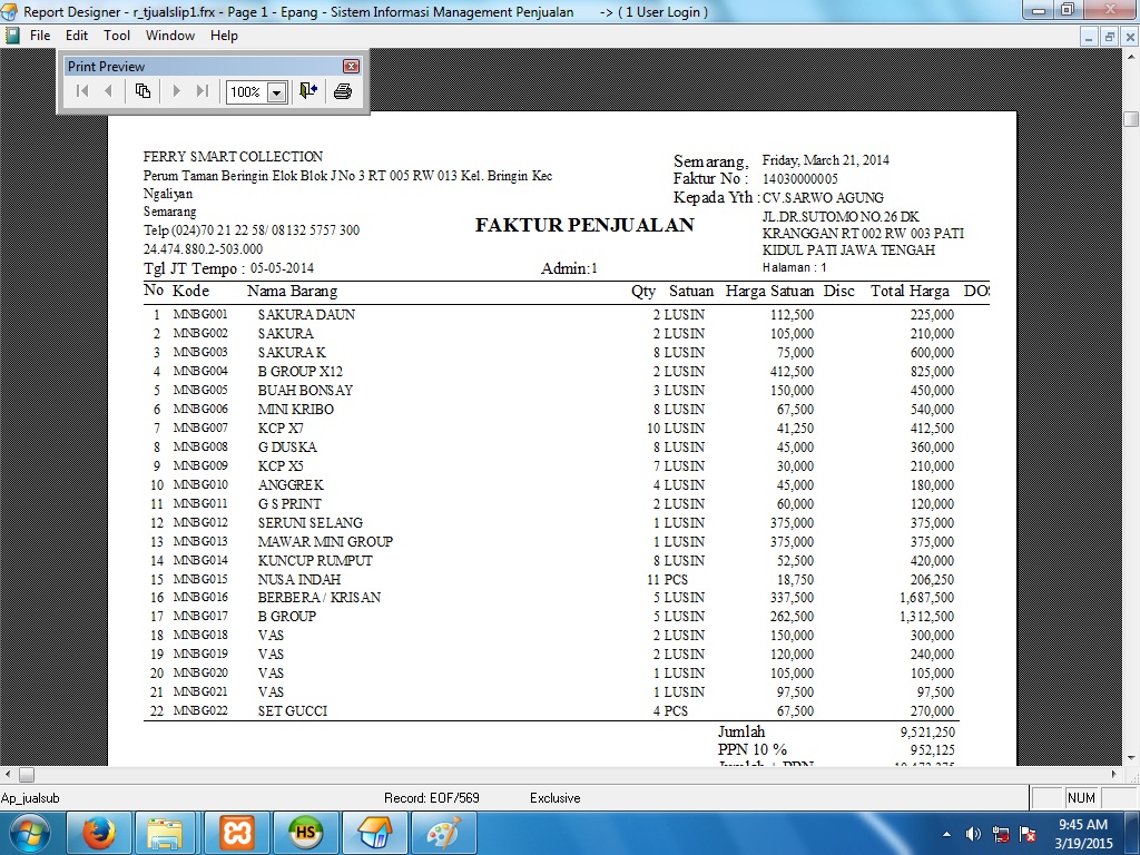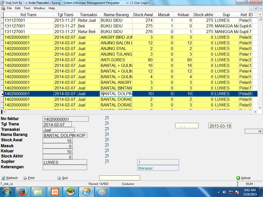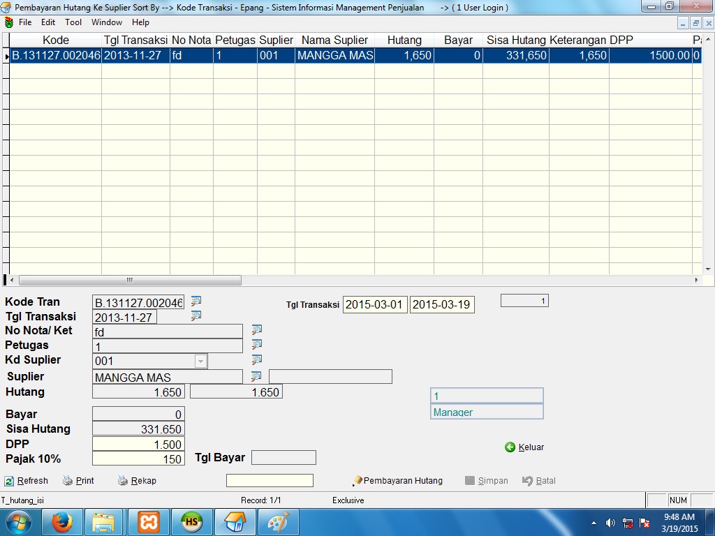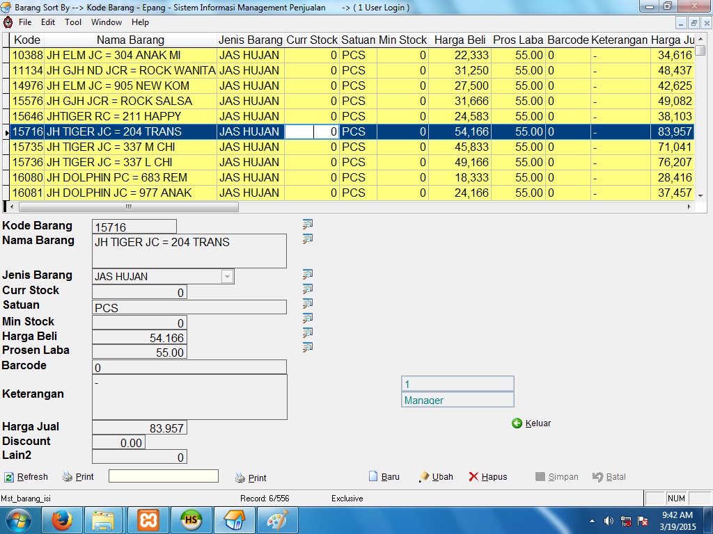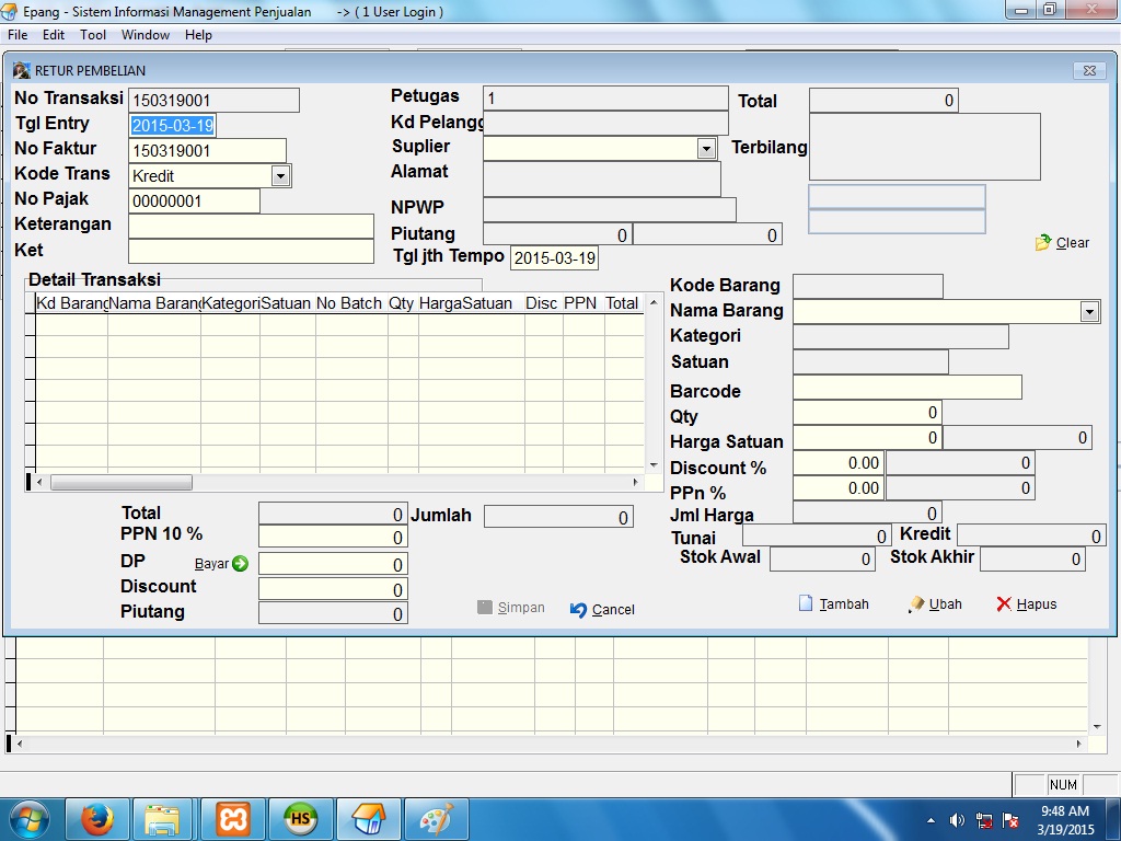 Aplikasi menggunakan Bahasa pemograman Visual Foxpro 9 dengan database MySql dan ODBC Mysql.