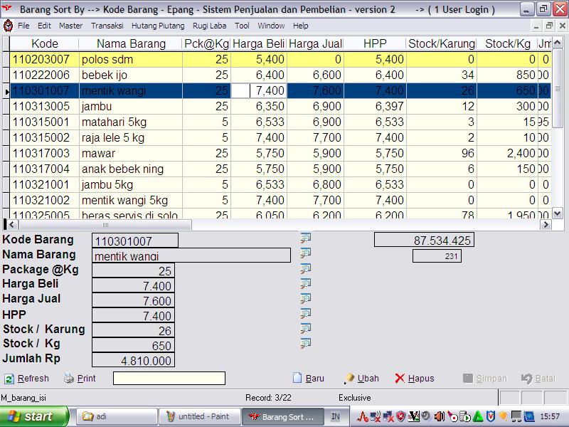 Software Program Aplikasi Programmer Beras Ecer penjualan perdagangan custom sesuai permintaan murah viral bagus universitas kuliah cepat mudah akses full garansi database aman rahasia terjamin asli original visual basic foxpro php laravel codeigniter android ios kotlin flutter java xcode source code pedurungan semarang